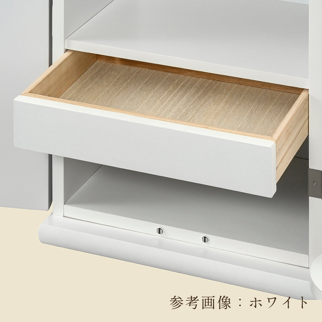 引き出しと下段のフリースペースを備えた収納設計により、限られたスペースでも必要なものをまとめて収められるよう工夫されています。