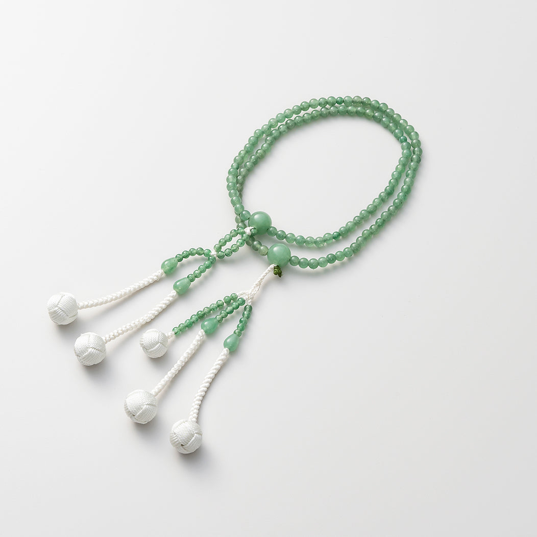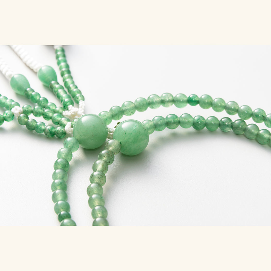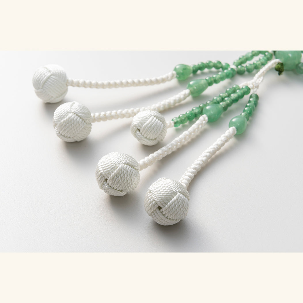 全ての玉を天然石で揃えた共仕立のお念珠は、シンプルなワントーンですっきりと仕上げることで、天然石の質感を十分にご堪能いただけます。