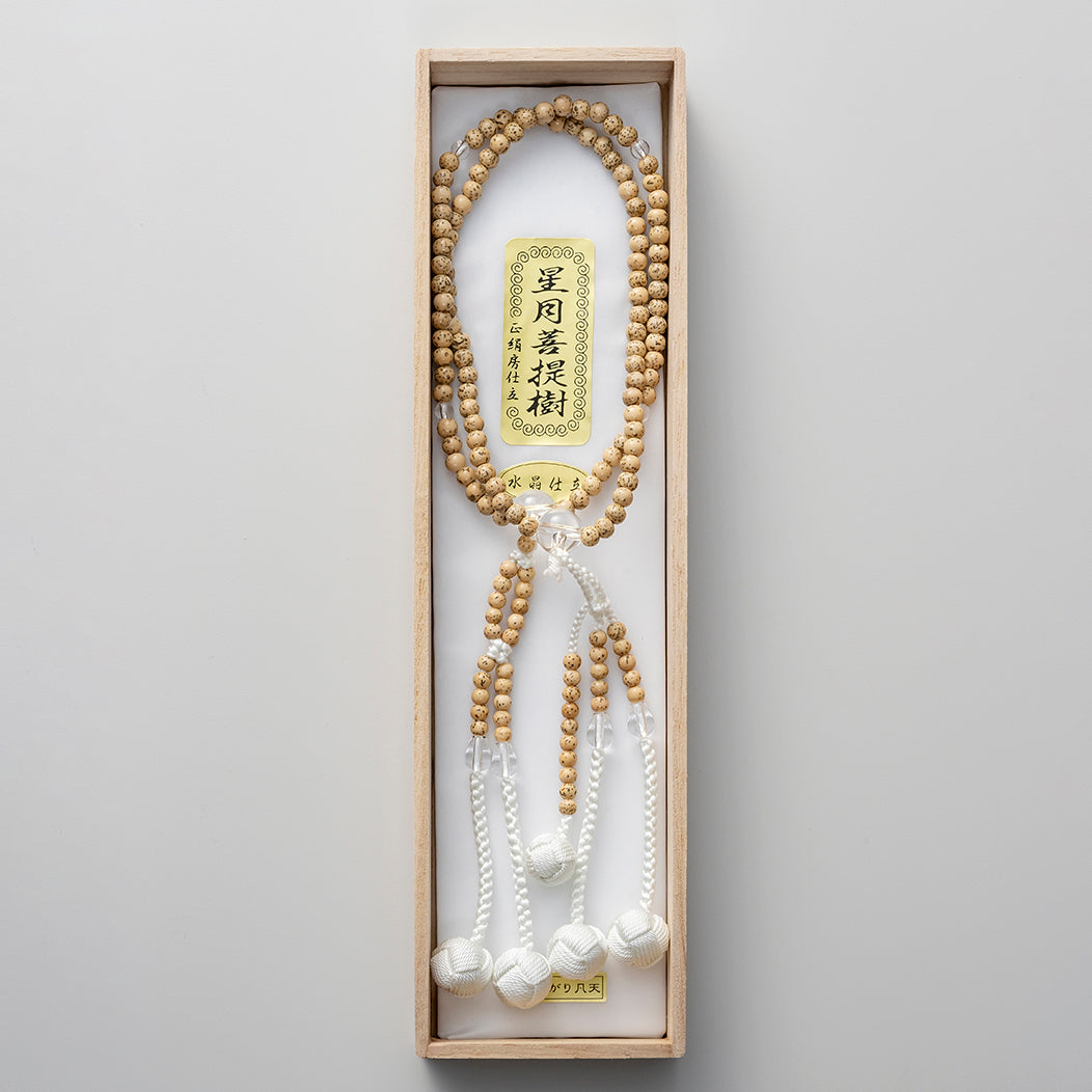 模様が特徴的な星月菩提樹は、丸い窪みを月、斑点を無数の星に例え、ひとつの玉の中に大宇宙を表しているといわれています。