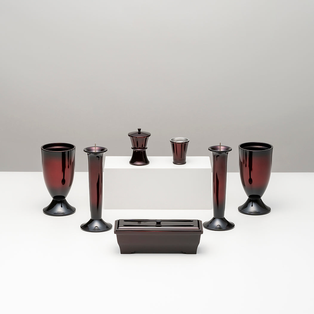 【5.2寸】花立:直径8 ×高15.6 /灯立:直径7.2 ×高19.7 /仏器: 直径4.7(上部)×高5.2 /茶器 :直径5.5(上部)×高8.2 /角香炉:角香炉:幅18.5×奥行7×高6(cm)