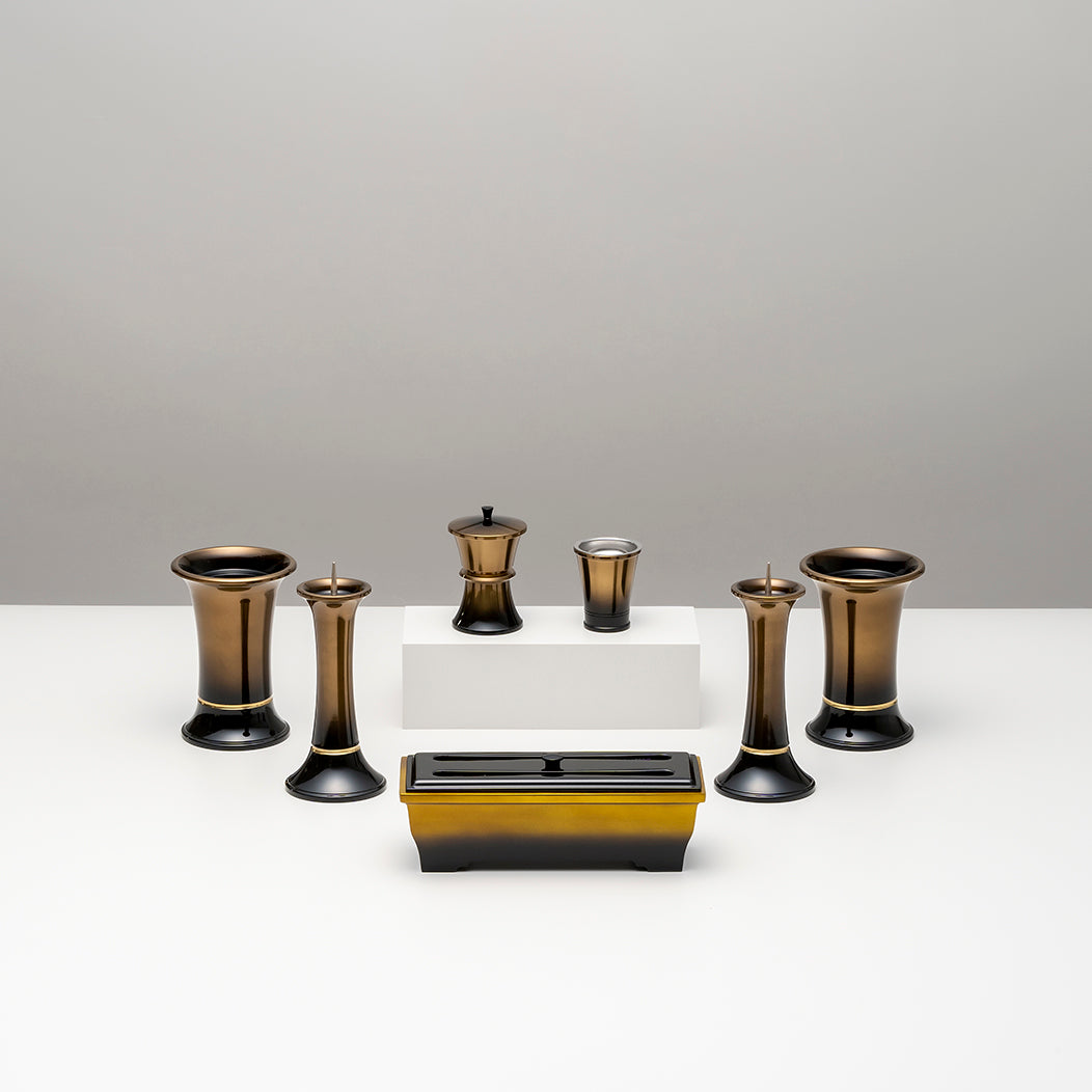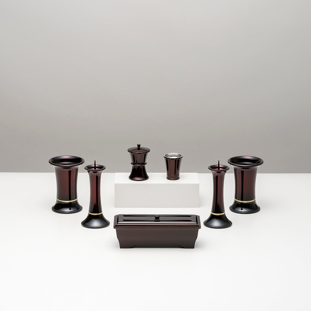 【3.5寸】花立:高さ約10.6/灯立:高さ約12.1/仏器: 直径4.7(上部)×高5.2 /茶器 :直径5.5(上部)×高8.2 /角香炉:幅18.5×奥行7×高6(cm)