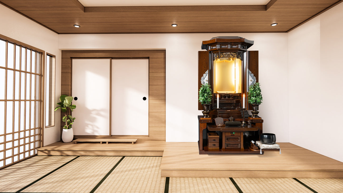 職人が一点一点丁寧に仕上げ、燻し加工を施した錺金具(かざりかなぐ)その独特な深みと落ち着いた輝きがお仏壇をより格調高く魅せます。