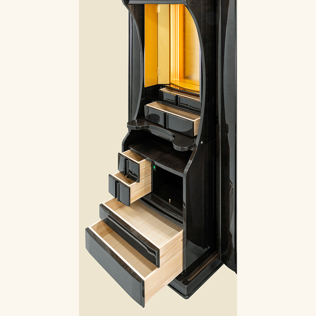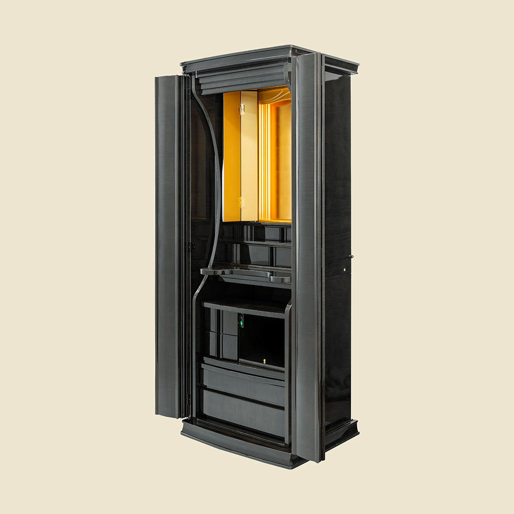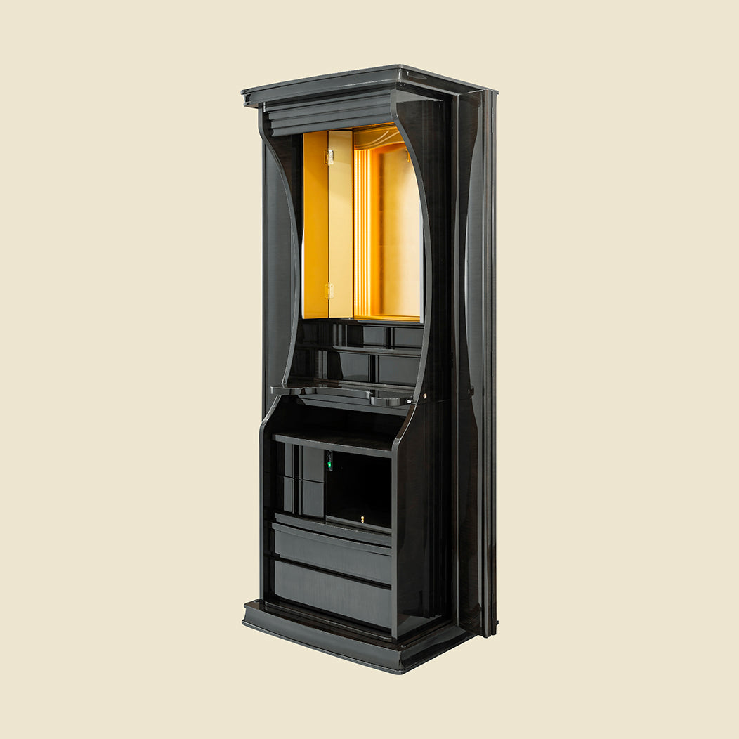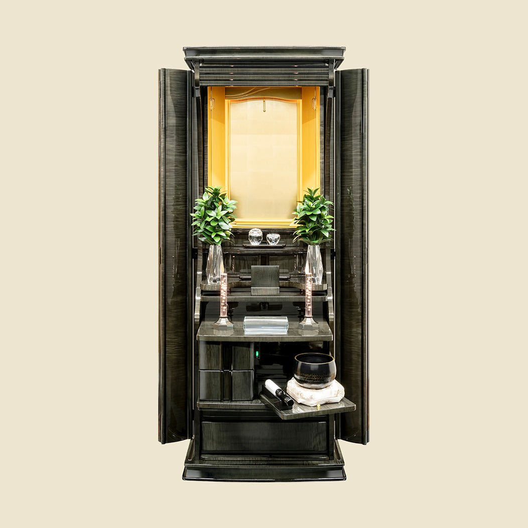 お仏壇側面の板を大胆にアールカットすることにより、斜めからでも御本尊を拝せます。 集会やご友人との祈りの時間をより有意義してくれます。