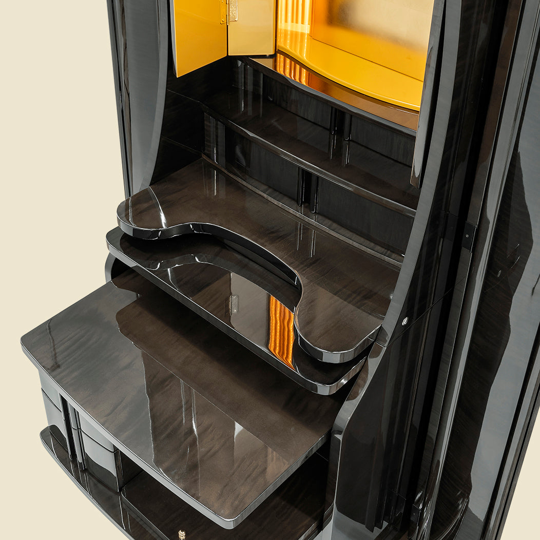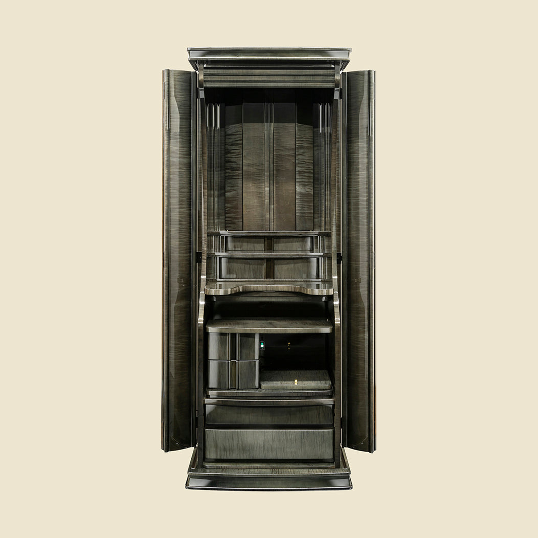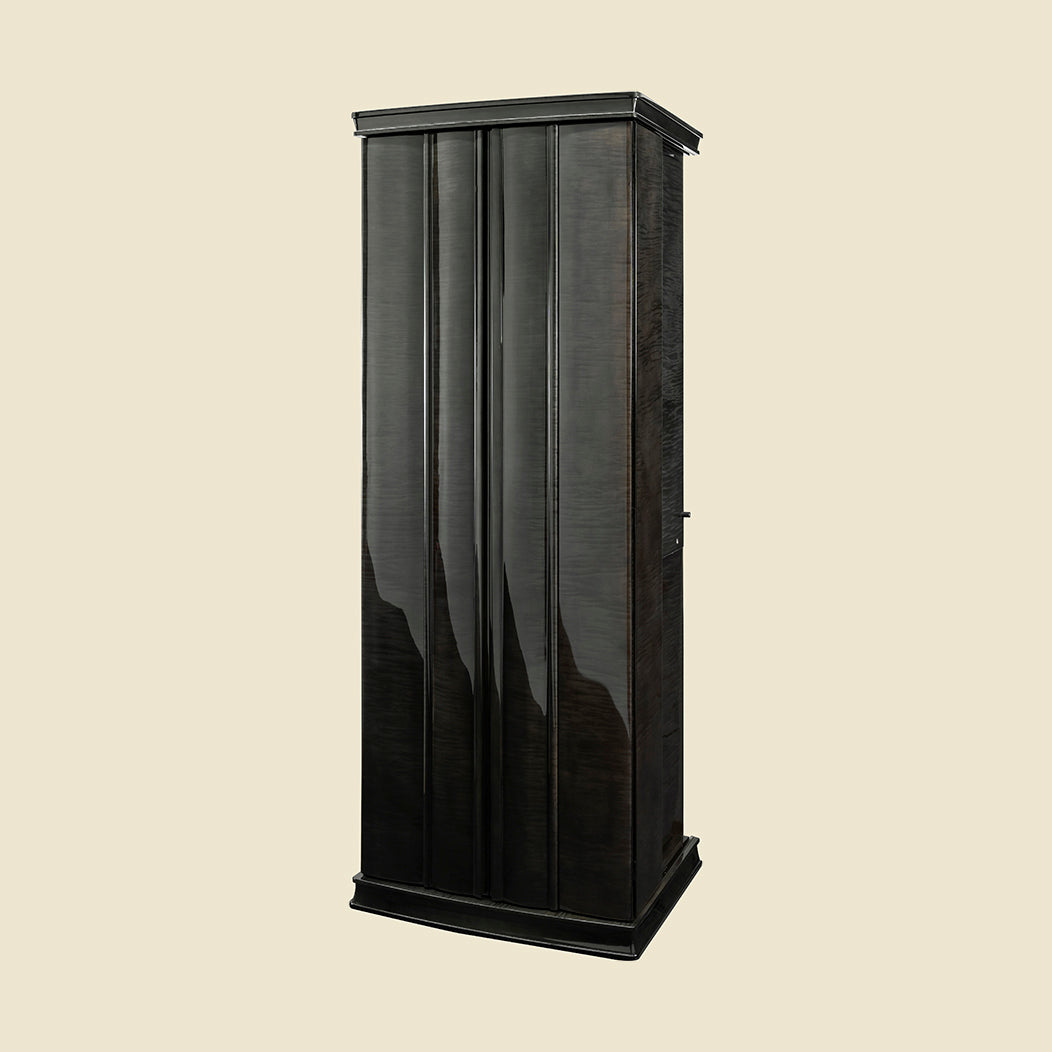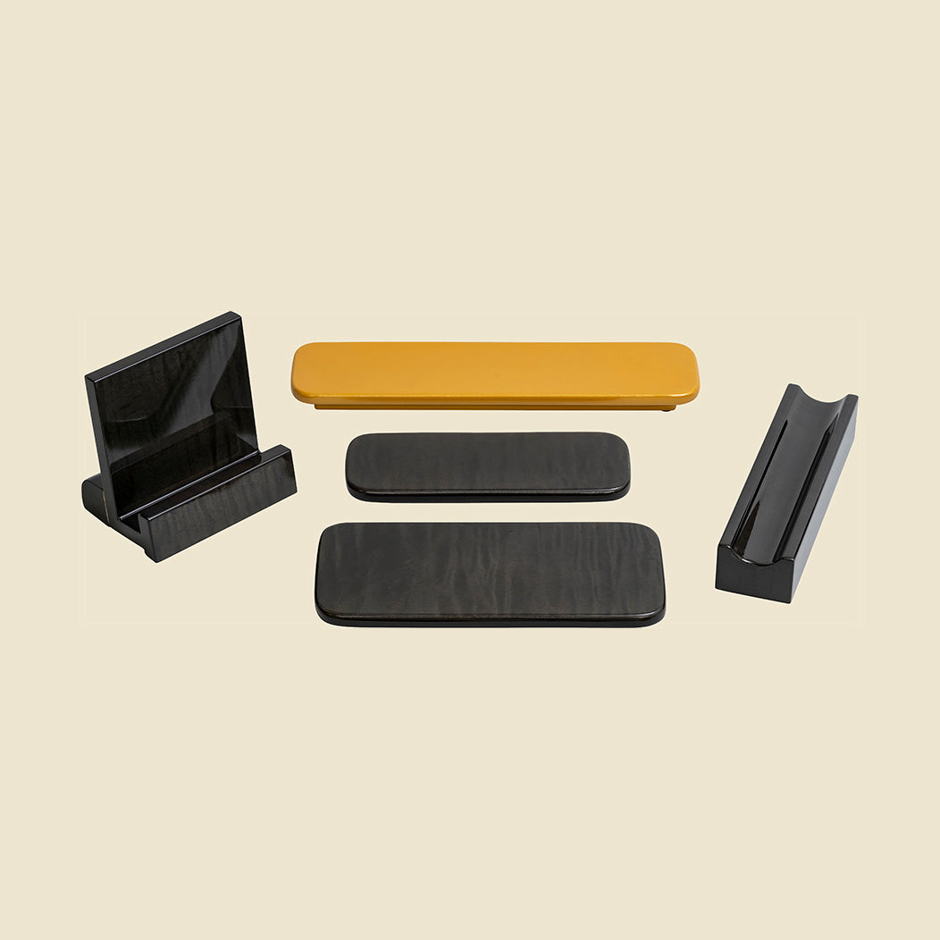 材質は重硬で肌目は緻密で艶やか、光の当たる角度によって陰影や光沢が変わり、波状に現れるその美しい杢目は非常に珍しく珍重されています。